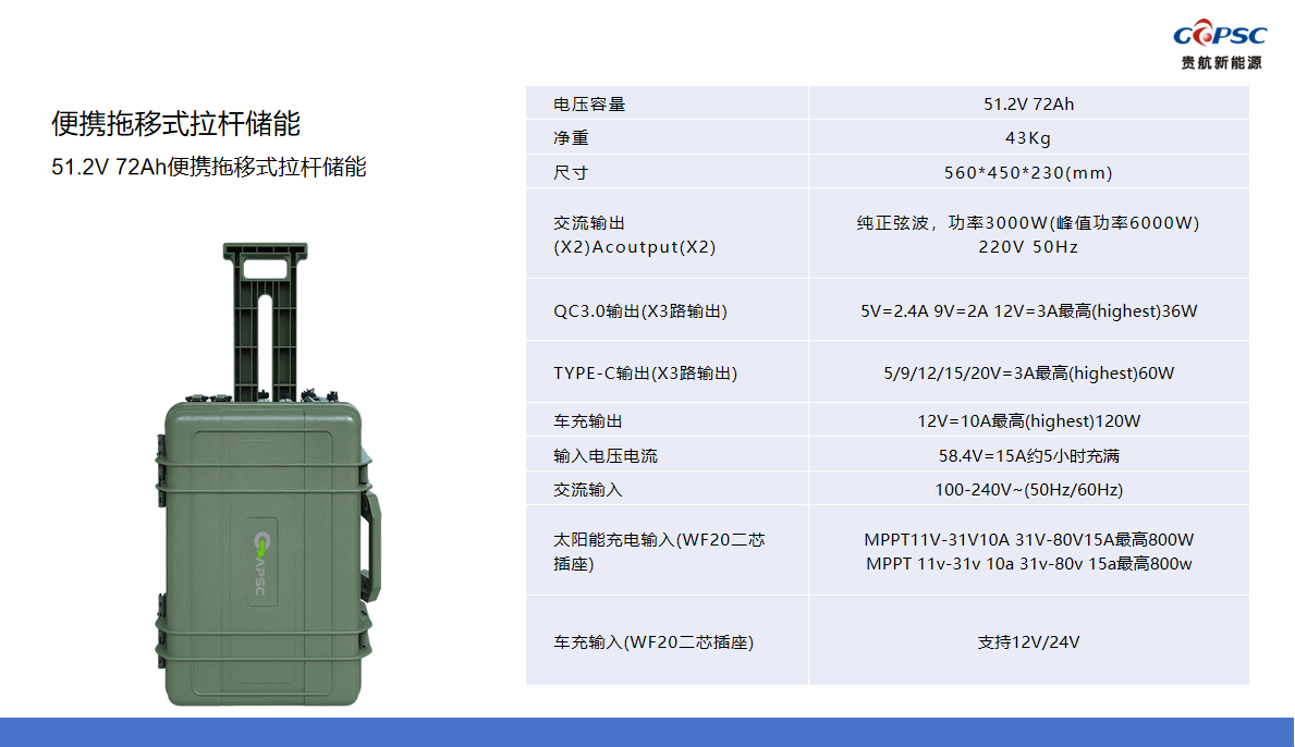 51.2V 72Ah便携拖移式拉杆储能