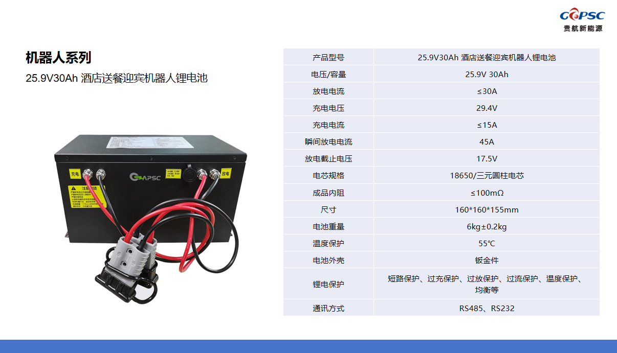 25.9V30Ah 酒店送餐迎宾机器人锂电池