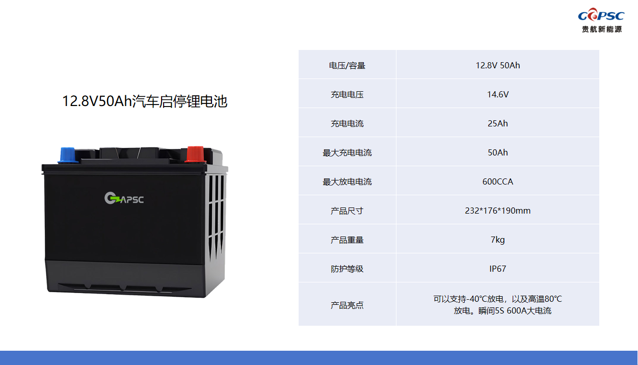 12.8V50Ah汽车启停锂电池